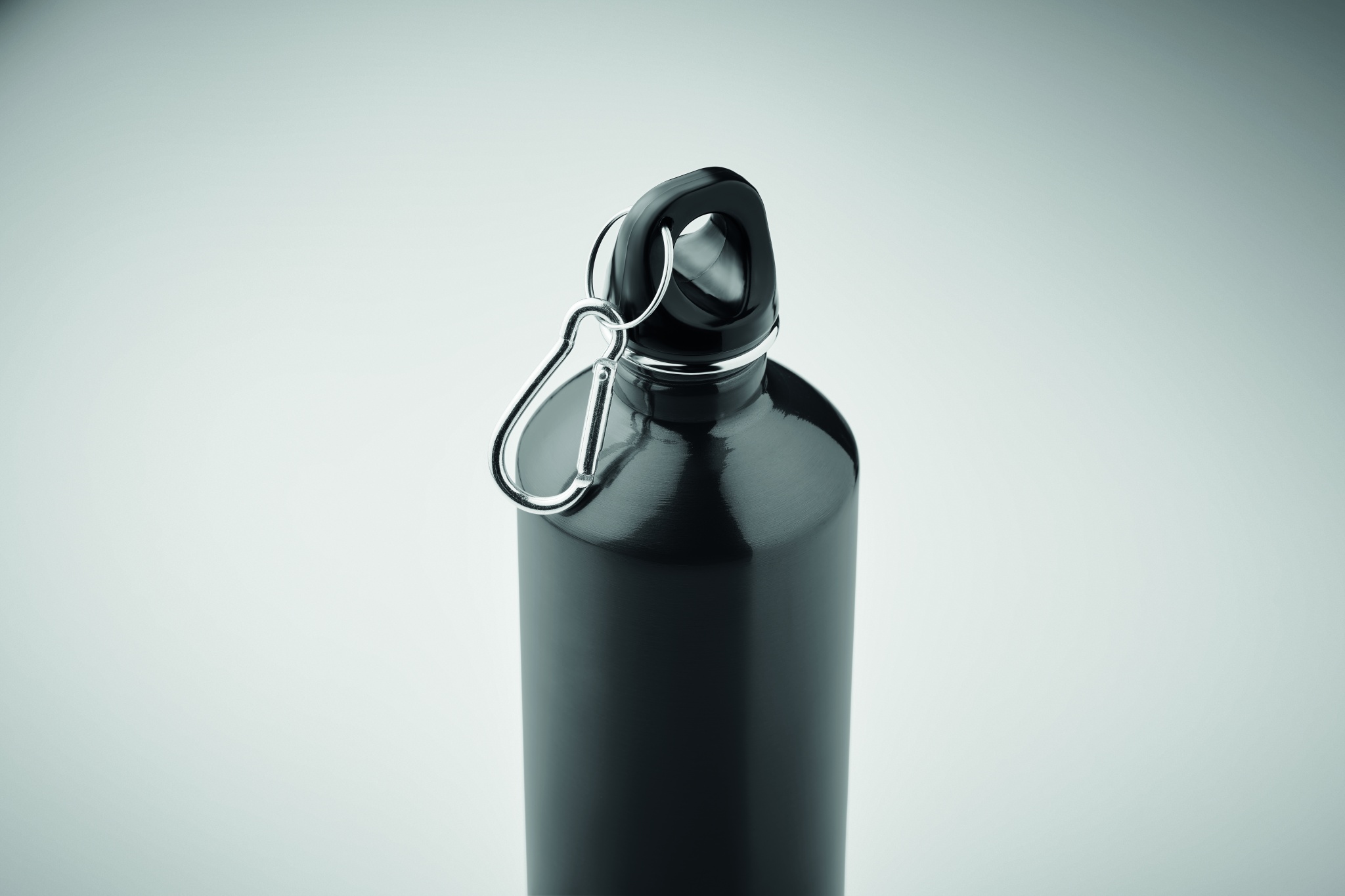Enväggig flaska i återvunnet rostfritt stål (90% återvunnet rostfritt stål och 10% rostfritt stål) med karbinhake. Volym: 750 ml. Karbinhaken är inte avsedd för klättring (icke yrkesmässig användning). Sublimeringstryck endast tillgängligt på vit artikel. Läckagefri.