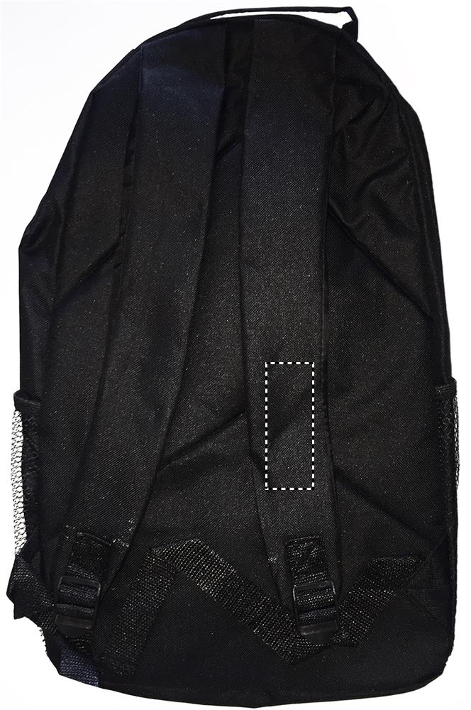 Ryggsäck med kontrastband. Praktiskt gummiband och spänne på ytterpanelen för att fästa föremål. Nätfickor på sidorna. Material 600D polyester.
