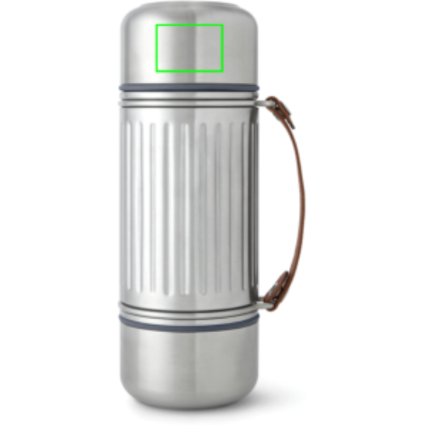 Denna vakuumisolerade flaska i rostfritt stål (1L) passar alla äventyr – från vandring till skidåkning. Håller drycker varma eller kalla i upp till 24 timmar. Den är helt läckagesäker och har ett stållock med enkel hällmekanism samt två dubbelväggiga koppar i rostfritt stål för att dela med sig. De breda kopparna står stadigt även på ojämna underlag, och ett tjockt nylonband gör den lätt att bära eller hälla med. Silikontätning förhindrar spill och flaskan tål diskmaskin (utan remmen).
