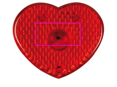 Var uppmärksam på dig själv! Praktisk hjärtformad ficklampa i plast, perfekt för cyklister. 1 myntcell ingår redan. Vi kommer att sätta din logotyp på det reflekterande fältet.