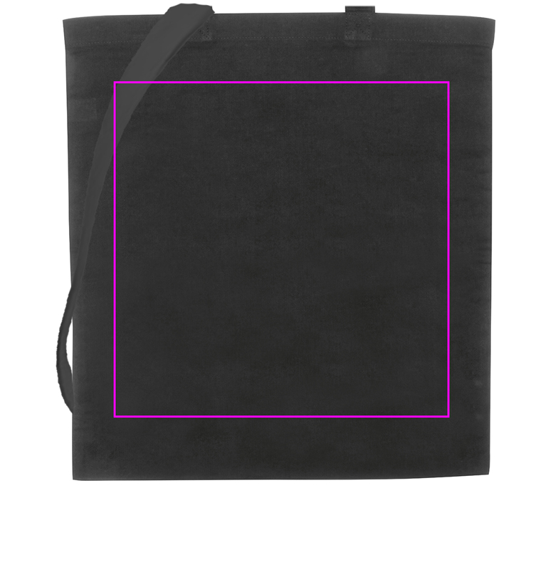 Certifierad Oeko-Tex® STANDARD 100, ekologisk bomullspåse med en ytvikt på 180 g/m² och två långa handtag. Vi trycker din logotyp i mitten av ena sidan av väskan.
