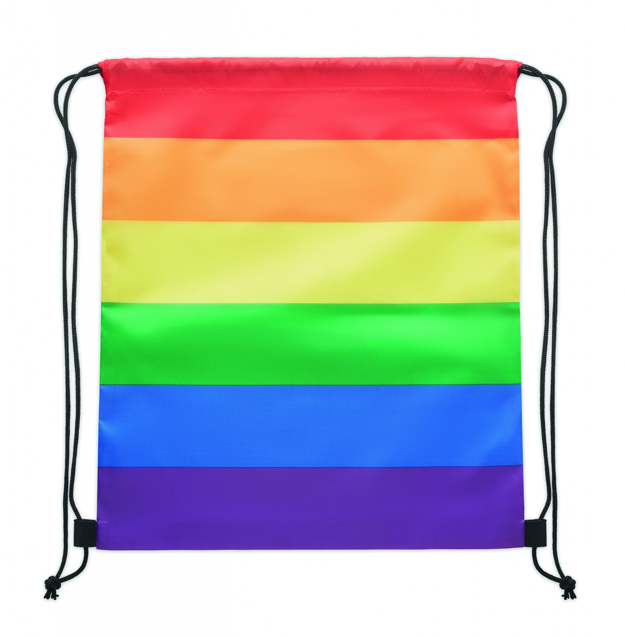 Regnbågsfärgad Pride Gymnastikpåse i 210D RPET polyester med PP-snören.