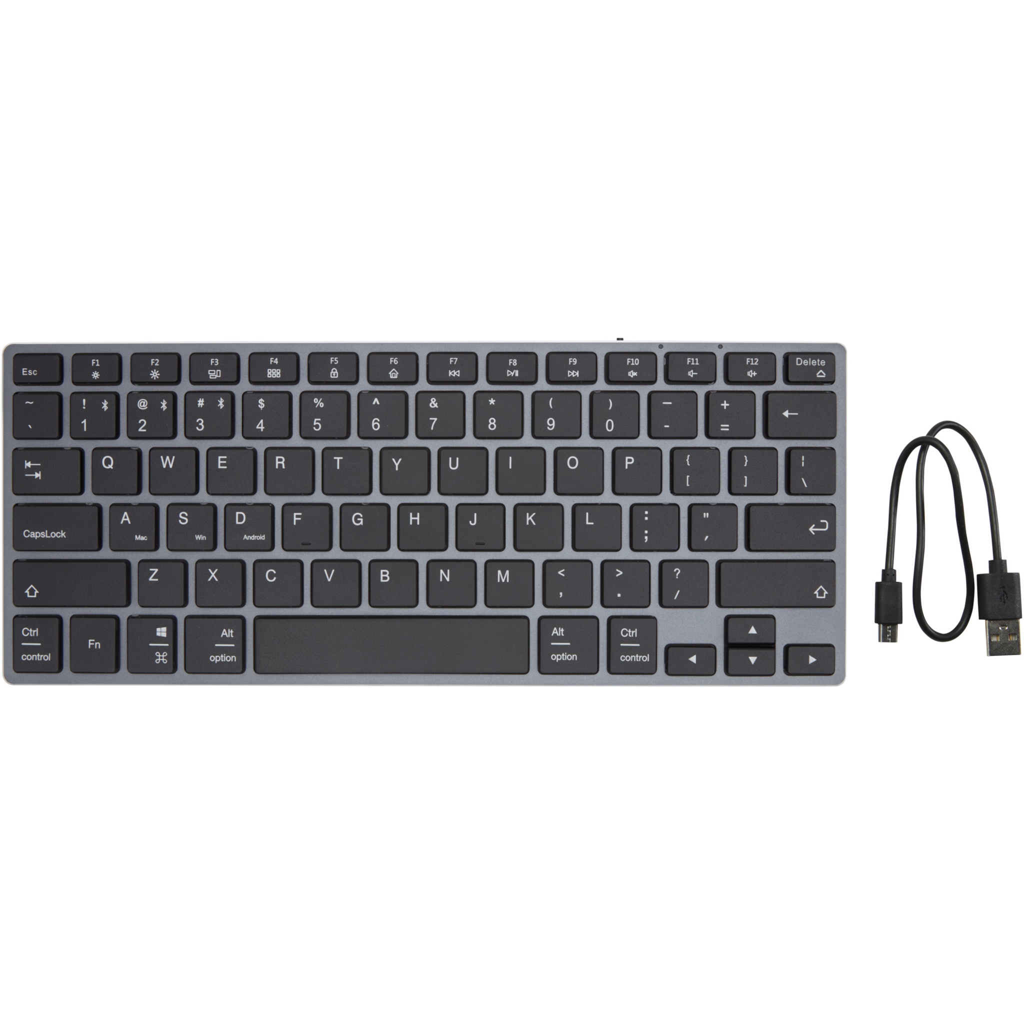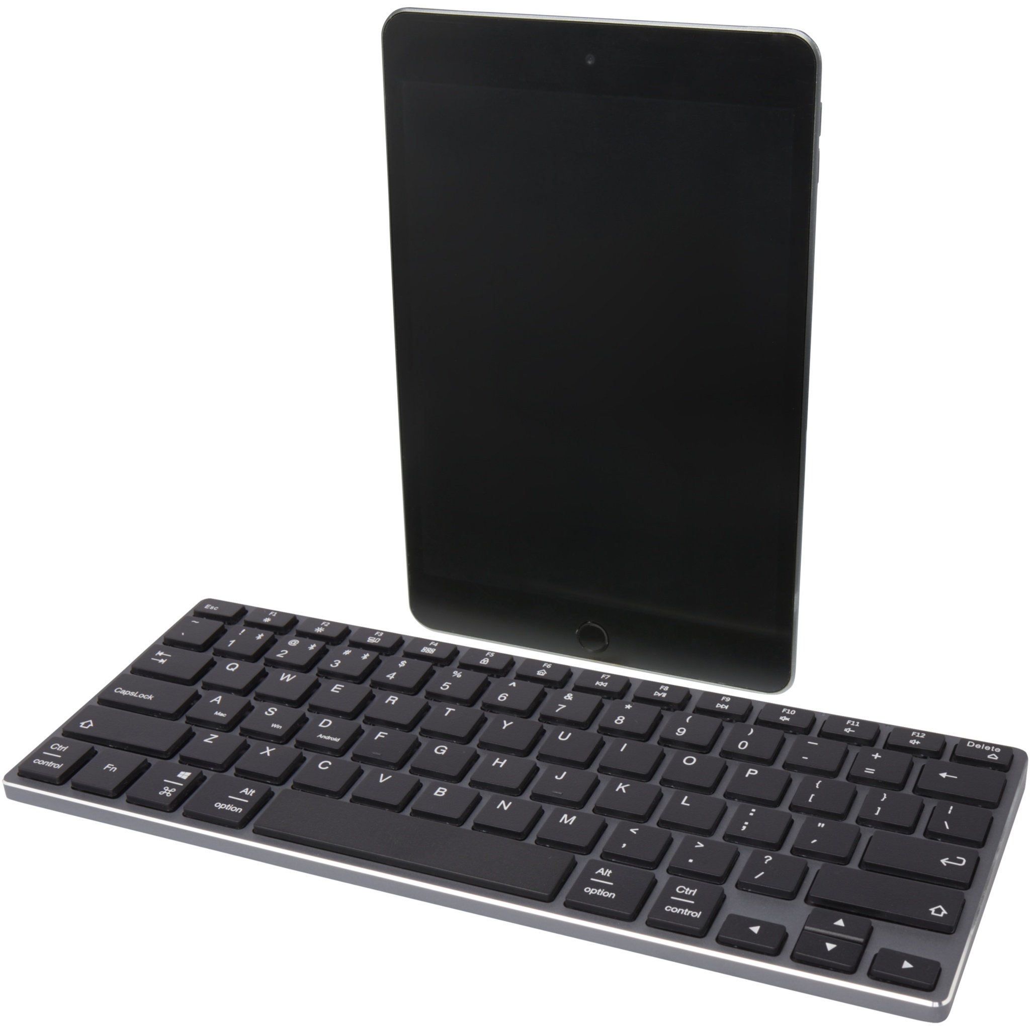 Lätt tangentbord (QWERTY-layout med 78 tangenter) med ett hållbart aluminiumhölje. Ett snyggt tillbehör när du arbetar hemifrån. Tangentbordet har Bluetooth® 4.0 för en stabil anslutning och låg strömförbrukning, och är kompatibelt med PC/bärbar dator, surfplattor, mobiltelefoner, smarta TV-apparater och andra enheter med Bluetooth®-funktion. Driftavståndet är upp till 10 meter. Standbytiden är upp till 10 månader efter en enda laddning med det inbyggda uppladdningsbara 350 mAh-batteriet. Levereras i en förstklassig kraftpapperslåda med ett färgstarkt klistermärke.