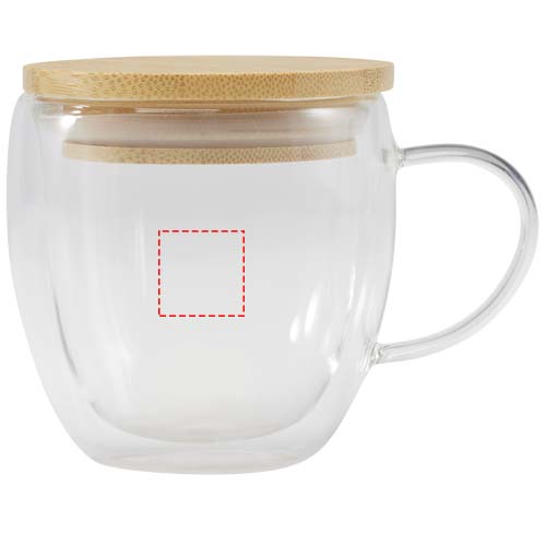 250 ml glasmugg med dubbelvägg som har isolerande egenskaper och håller dryckerna varma längre. Det medföljande bambulocket ger extra isolering, motverkar spill och bevarar dryckens arom, vilket gör den till ett praktiskt val för vardagsbruk.
