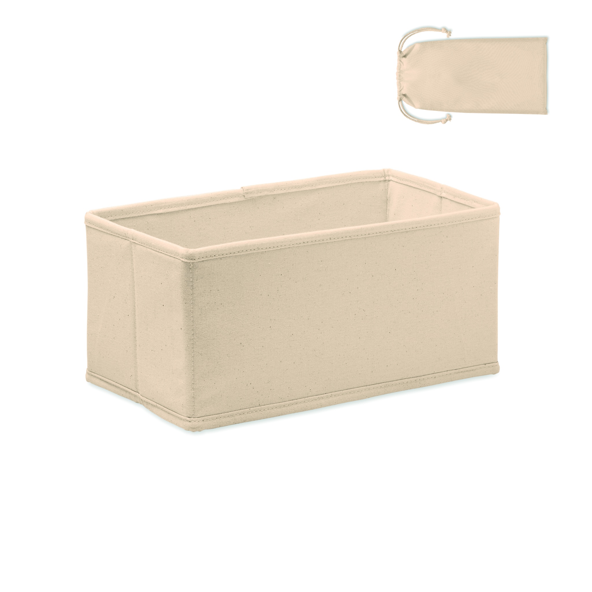 Medium vikbar tillbehörs- eller förvaringslåda i bomull (220 gr/m²). Levereras i en bomullpåse (140 gr/m²).
