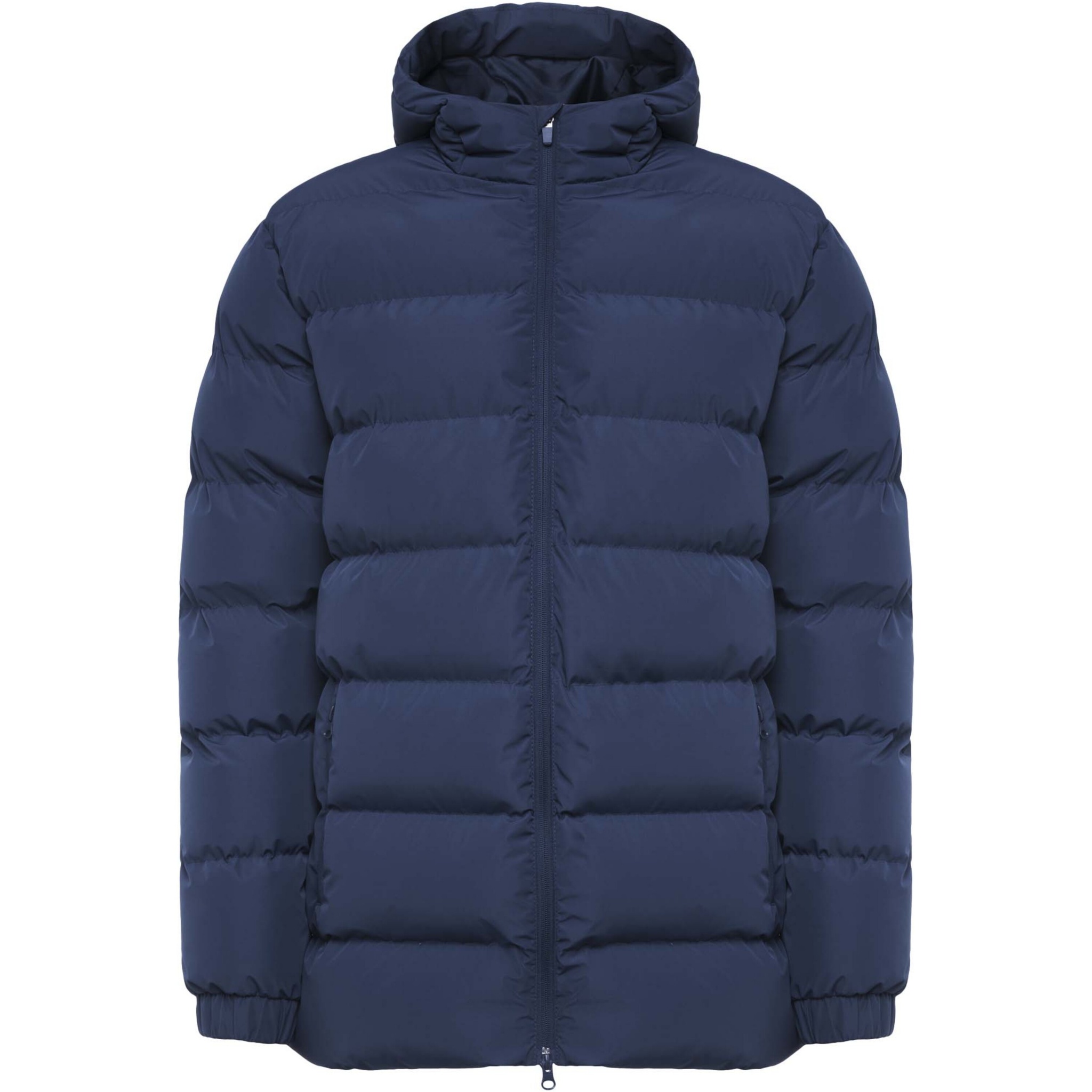 Vadderad sportparkas. Huva med topp. Dragkedja framtill med matchande löpare och hakskydd. Elastiska muddar. Två sidfickor med dragkedja. Invändig bröstficka på vänster sida. Inre åtkomst för hantering. Borttagbar etikett. Vattentät. Vindtät.