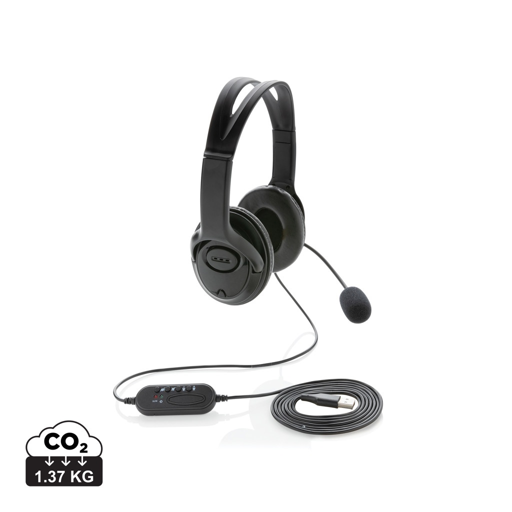 PC USB stereo-headset med in-line ljudkort och volym/mute-kontroll har ett ypperligt stereoljud och mikrofonen säkerställer att konversationen flyter på tydligt under samtalet. Detta lättvikt over-ear headset i ABS är designat för långvarigt, dagligt bruk och är kompatibelt med PC och Mac®. Med 2 meter USB A kabel för optimal anslutning med alla datorer. Perfekt för både samtal och videosamtal.