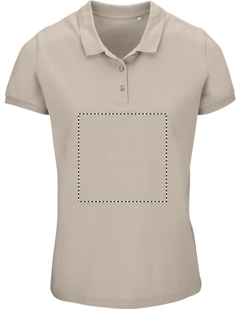 SOL'S PLANET DAM, TENNISTRÖJA FÖR DAMER, 100 % ekologiskt odlad bomull PIQUE 170, Ribbad krage , Tejpad halsringning, Förstärkt knappslå, Korta ärmar, Knäppning med 3 ton-i-ton-färgade knappar, Rak underkant, Skuren och sydd, Reservknapp på insidan av sidsömmen för matchande storlekar, se storlekstabellen i avsnittet om produktdokumentation.