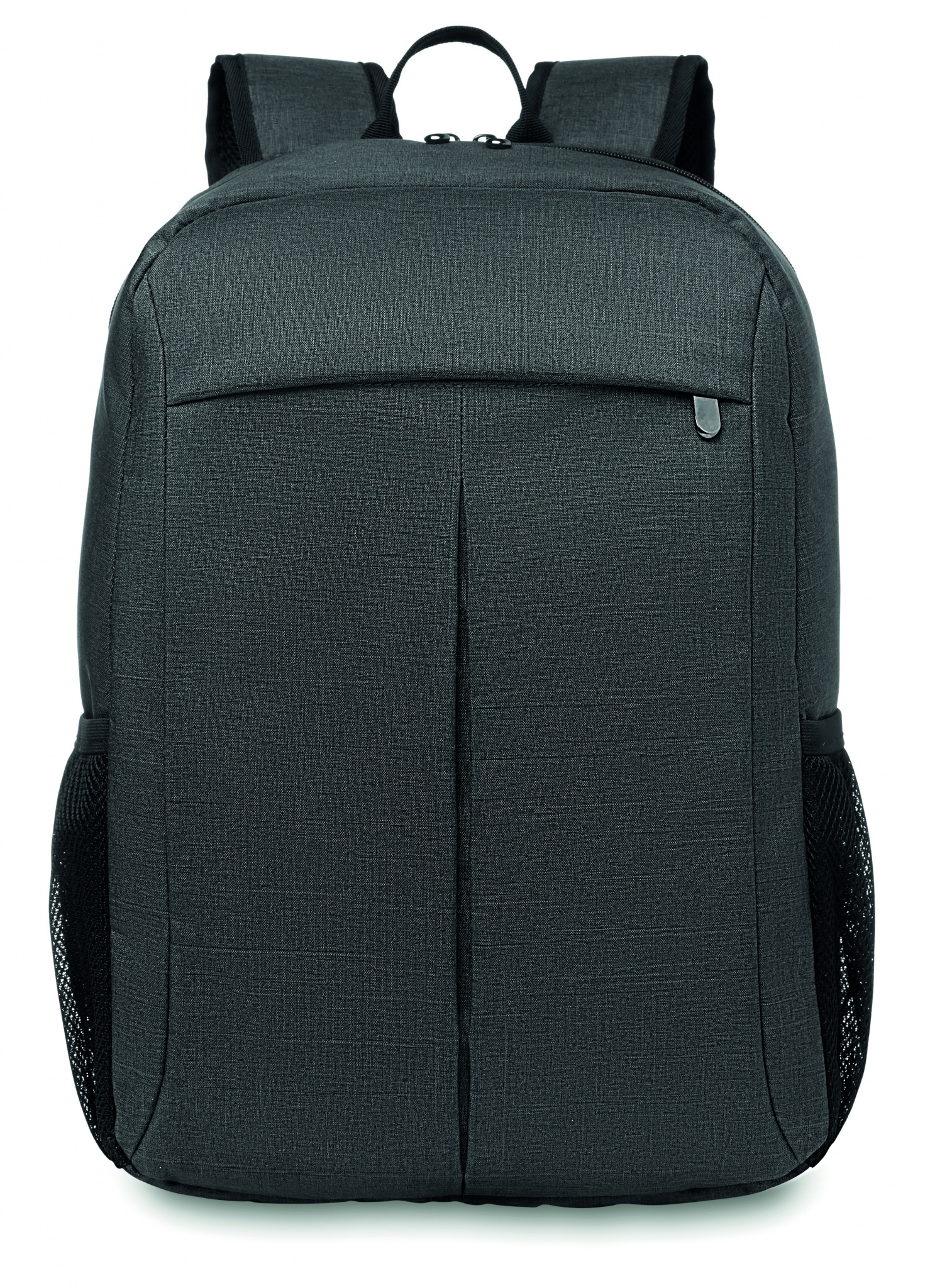 Datorryggsäck i 360D duoton polyester för 15 tums dator. Blixtlåsförsedd frontficka. Vadderade baktill med ställbart axelband. Praktisk trolley hållare på baksidan.