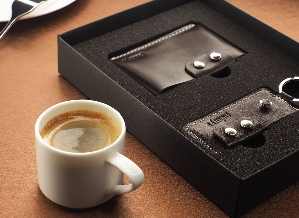 Inkluderar läderplånbok