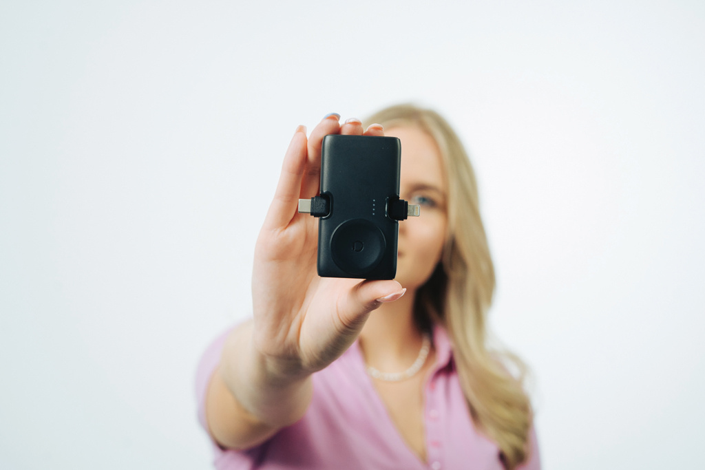 Bär med dig 20W bärbar ström i fickan, Urban Vitamin San Diego är en lättviktig men kraftfull 5000mAh powerbank. Med dubbla snabbladdningsalternativ för att ladda via den integrerade iOS-kontakten (för iPhone 14 och äldre modeller) och den toppmoderna Type-C-utgången kan du ladda din telefon utan att behöva ta med några kablar! Du kan till och med ladda två enheter samtidigt. Alla utgångar erbjuder ultrasnabb 20W-laddning för att ladda upp till 50% på mindre än 30 minuter. Förutom två integrerade kontakter har produkten även en USB C-utgång om du vill använda din egen kabel eller snabbladda powerbanken. Med en integrerad klockladdare för att ladda alla nyare Apple Watch-modeller. Den har också ett integrerat stativ för att ladda din telefon medan du tittar på film eller lyssnar på musik. Tillverkad av RCS-återvunnen ABS och återvunnen PC, det totala återvunna innehållet är 24% baserat på total produktvikt. Tillverkad utan PVC och levereras i plastreducerad förpackning.