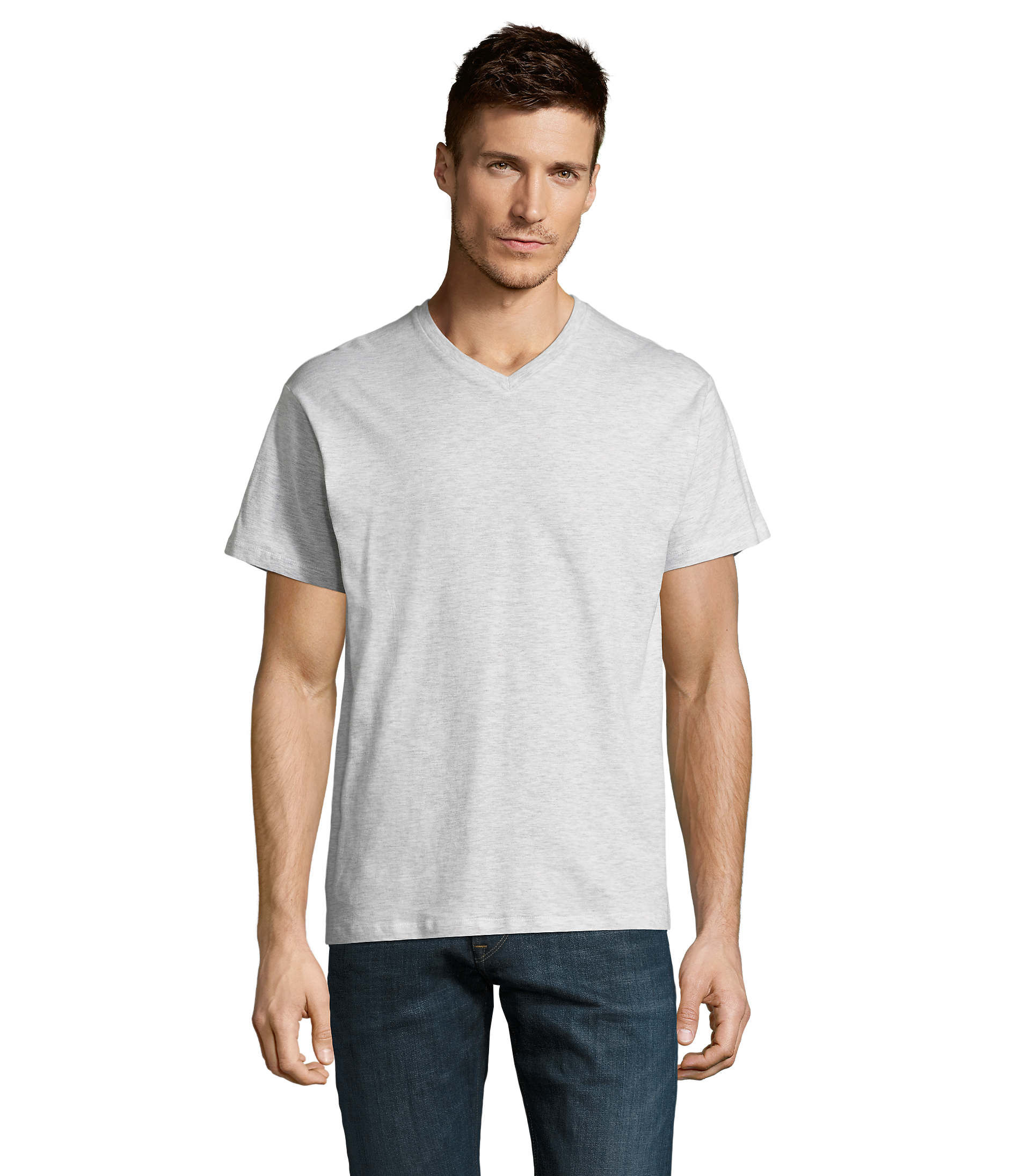 SOL'S VICTORY, T-SHIRT MED V-RINGNING FÖR HERRAR, 100 % halvkammad ringspunnen bomull Jersey 150, Förstärkningstejp på halsen, Korta ärmar, 2 ribbtjocklekar i kragen, Rundstickad, (1) Askgrå: 98 % bomull / 2 % viskos, (2) Gråmelerad: 85 % bomull / 15 % viskos för matchande storlekar, se storlekstabellen i avsnittet om produktdokumentation.